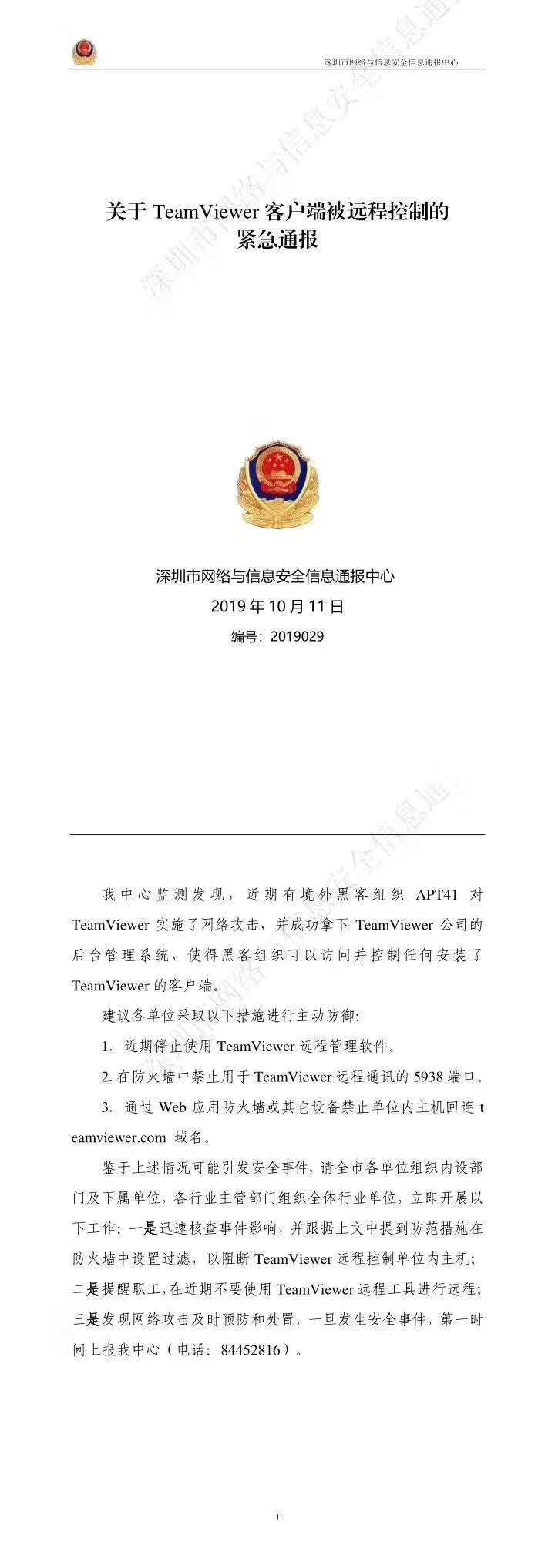 根據(jù)深圳市網(wǎng)絡(luò)與信息安全信息通報中心檢測發(fā)現(xiàn),近期有境外黑客組織APT41對TeamViewer 實施了網(wǎng)絡(luò)攻擊,并成功拿下TeamViewer 公司的后臺管理系統(tǒng),使得黑客組織可以訪問并控制任何安裝了TeamViewer 的客戶端。